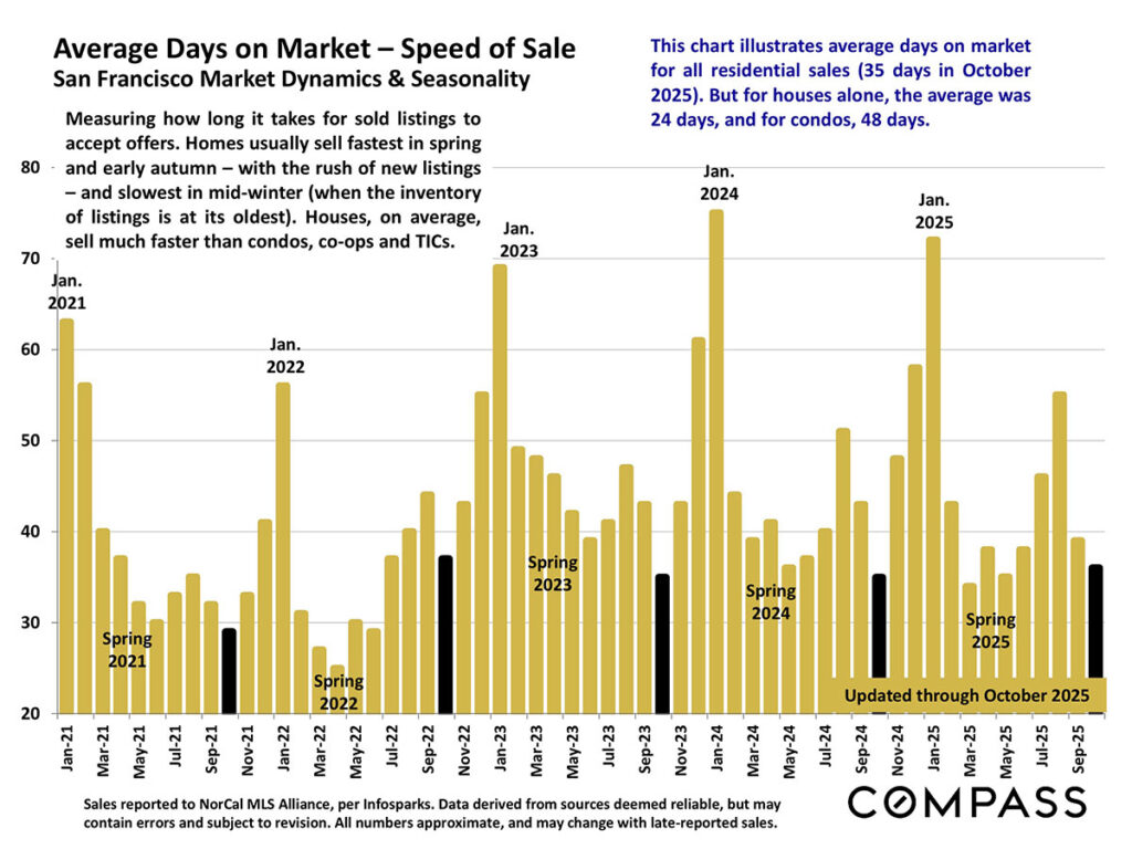 The average days on market for all residential sales in October was 35. For houses alone, the average was 24 days, and for condos the average was 48 days.
