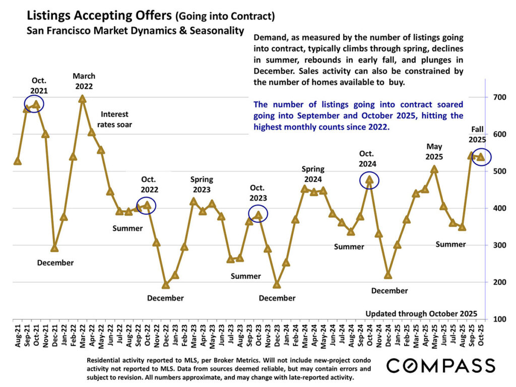 The number of listings going into contract in September and October hit the highest monthly counts since 2022.