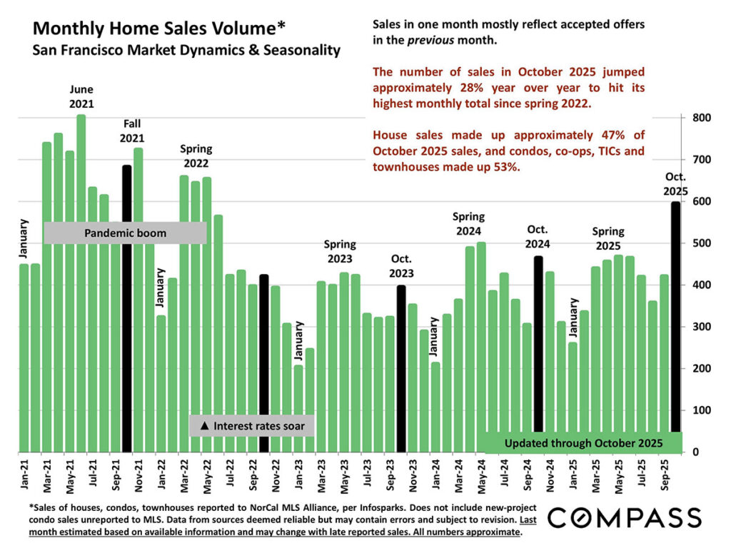 The number of sales in October 2025 increased 28% to hit its highest monthly total since the spring of 2022. House sales made up around 47% of October sales.