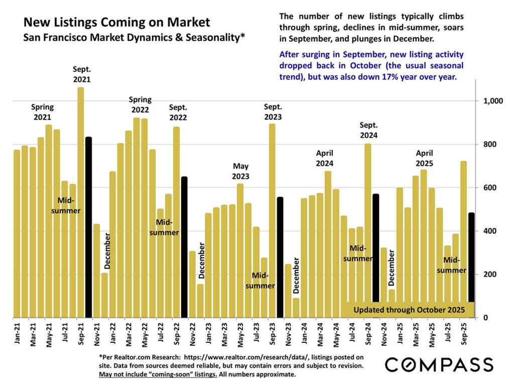 New listings decreased in October and were down 17% compared to October 2024.