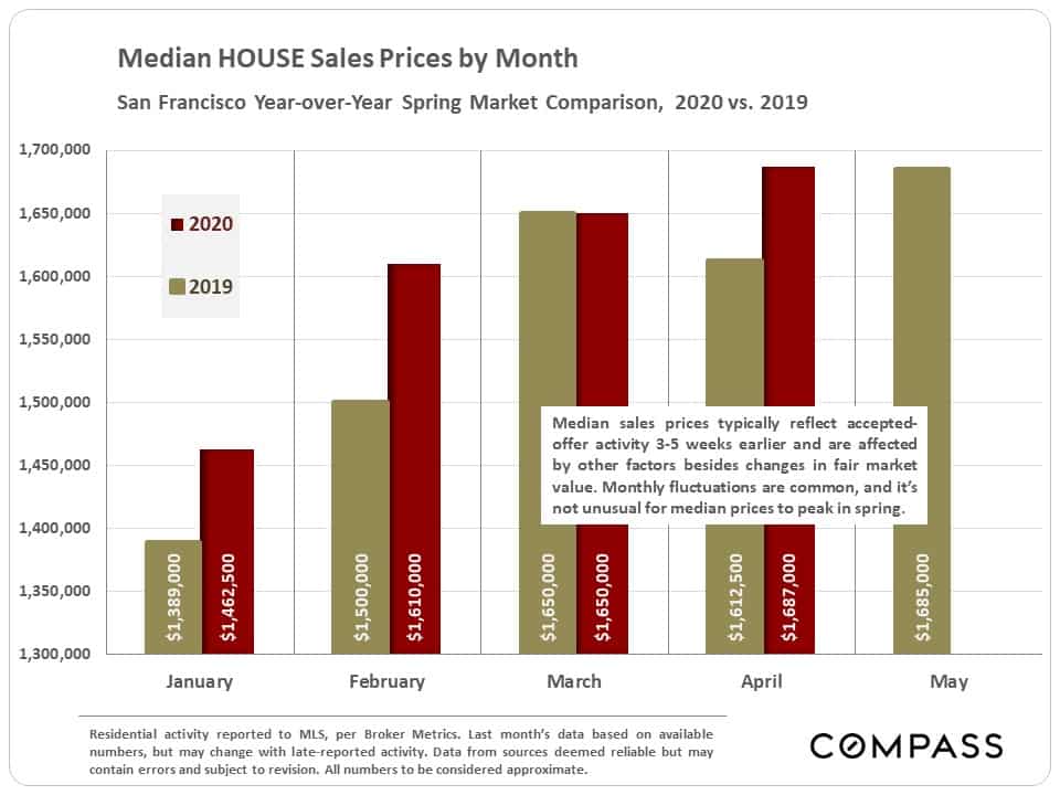 Generally speaking, the first months of 2020 have been characterized by year-over-year increases in median home sales prices across the Bay Area.