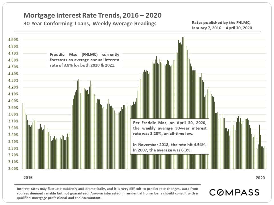 And lastly, some good news for buyers and homeowners looking to refinance— interest rates hit new historic lows. According to Freddie Mac, average rates for a 30-year mortgage dropped to 3.23% on April 30, 2020.
