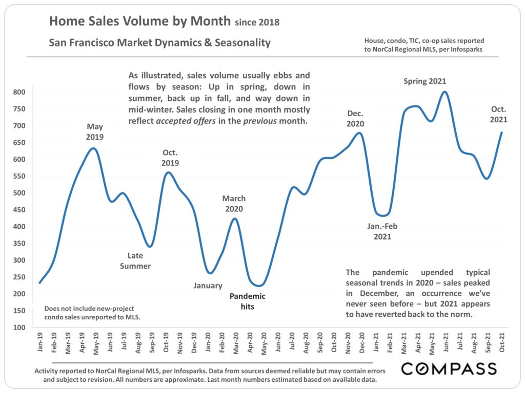 As typically happens this time of year, as we move into the holiday season, the market slows down. New listings will decline and bottom out in December, and sales volume will lag at the end of the year. The coming months can offer opportunities for buyers to make aggressive offers on listings that are still lingering on the market.